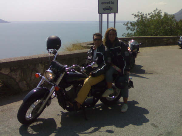Ancora una manciata di curve ed eccoci arrivati! Arriviamo in una piazzettina con un parcheggio abbastanza grande pieno quasi di sole moto! Che bella visione! Legati i caschi alle moto ci rechiamo sulla spiaggia che devo dire la verità un po' strettina ma molto lunga non c’è assolutamente il rischio di rimanere in piedi! Molto rapidamente via il fido zainetto, guanti, giubbotto, maglia, scarpe e pantaloni e subito a fare un bel bagno rinfrescante (avevo già sotto il costume non ho fatto il bagno nudo anche se dalla mia descrizione sembrava). Che bella quell’ acqua così fresca, azzurra e pulita ma facciamo parlare le immagini.