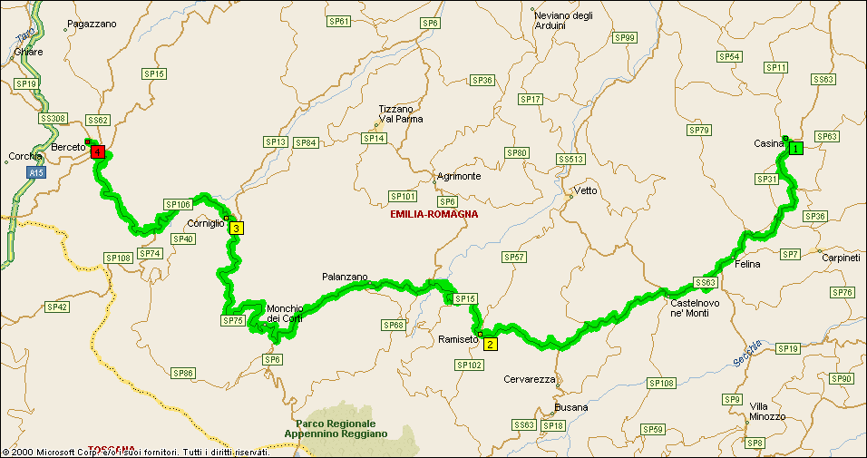 Per il tragitto io farei la mitica SS62 Cisa all'andata. Al ritorno chi vuole può rientrare a Casina dal crinale. I km sono praticamente gli stessi 97 Cisa - 94 Crinale