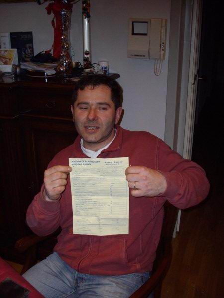 vediamo qui Ilo con in mano l'agognato documento. Lo vedete che guarda guardingo il Paolo in quanto gli astanti al banchetto ( eravamo a casa del Berta ) gli stavano appunto ricordando come il dipendente avesse superato il titolare e che ciò fosse dovuto a ad una retribuzione percepita sicuramente eccessiva, quindi Ilo era un pò preoccupato riguardo eventuali rappresaglie...