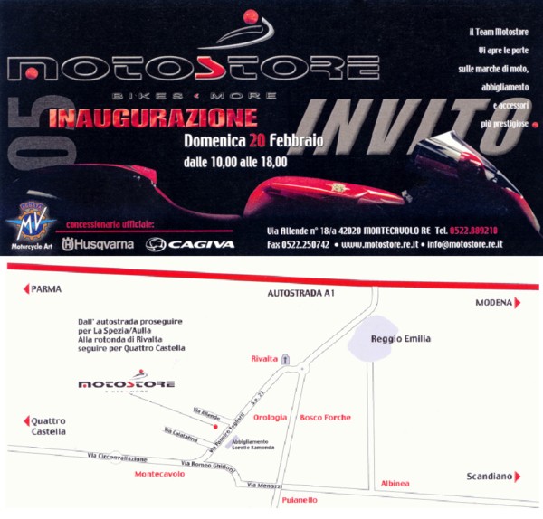 Per quanto riguarda le moto si tratta di un negozio multi marca, ed io, francamente, se volessi un honda o una yamaha ecc. andrei direttamente dal concessionario ufficiale. Poi ha moto fuori dalla portata di molti come le MV Brutale e F4 ecc...