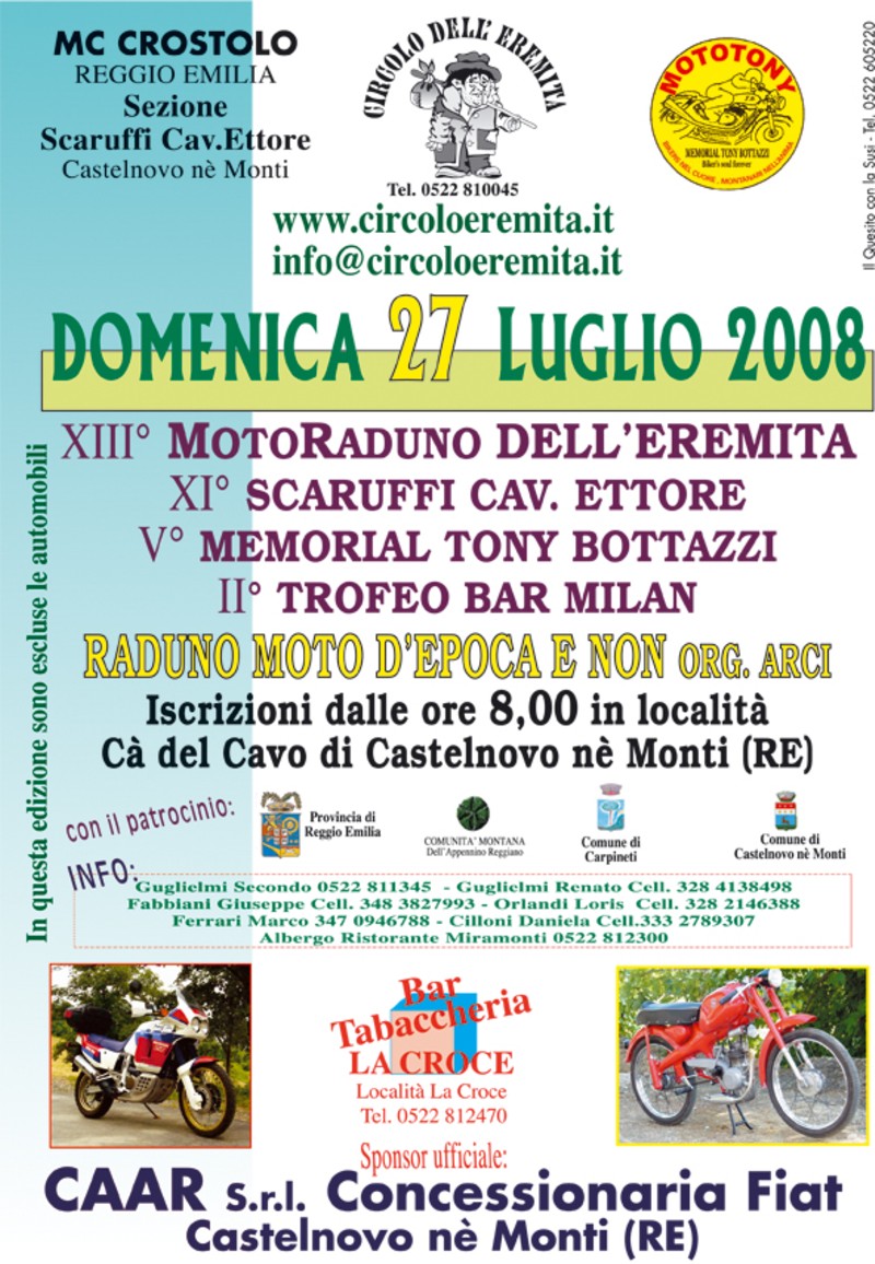 Sì, a Carpineti inebriati da cotanta velocità e con l'adrenalina a 1000 abbiamo preferito ripiegare su Casina... tranne lo stoico Berta che ha deciso di concludere il giro per poi fermarsi a pranzo - e secondo me lì ci ha preso vedendo le " resdorone" che circolavano. Se sapevo che ti aggregavi ti avremmo aspettato ! Comunque la menifestazione è stata simapatica anche se in effetti ci vuole il mezzo giusto. Avevo l'acqua a 120 ° ! Nota di demerito invece per la decisione del passaggio in mezzo agli stand gastronomici dello Slow Food a Felina ed al capottamento del vecchietto con il Galletto Guzzi ! Che bota!