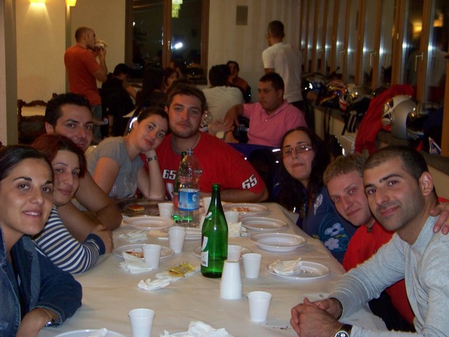 Cena in compagnia a Castellammare del Golfo, in simbolico contatti con gli altri ragazzi del gruppo Sicilia, per un totale di 130 moto del Gruppo Sicilia.