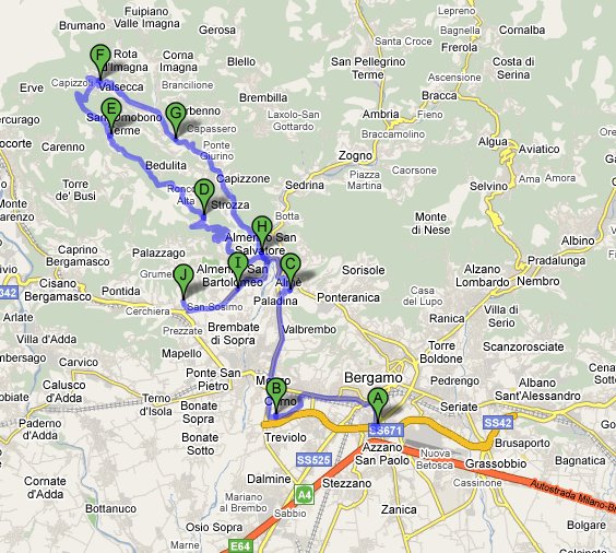 Bellissimo precorso tra le colline del Bergamasco, passando per Almè, per poi salire sino alla Roncola, una volta raggiunta la vetta si è proseguito per Sant'Omobono, seguendo la Valsecca, raggiungendo Almenno San Salvatore per arrivare a destinazione, Palazzago. Per metà percorso, il gruppo si è gustato panorama della Brianza e per la