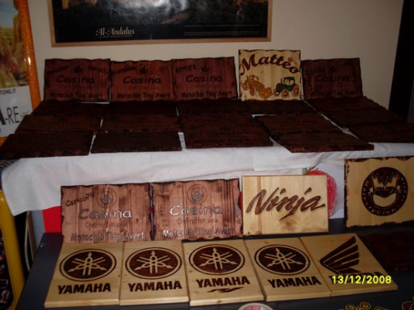 Erano in bella mostra i gadget e le targhe personalizzate prodotte da Freccia74: