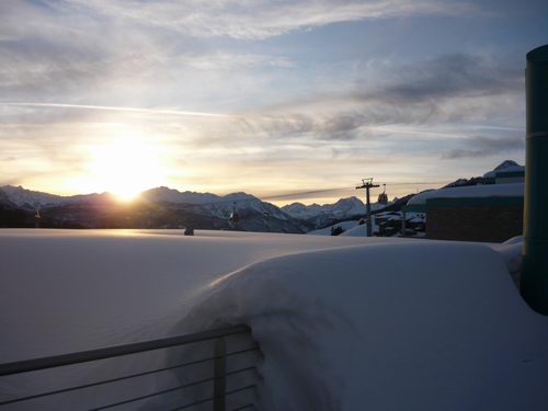 Vista al mattino del residence, il villaggio olimpico utilizzato per le olimpiadi 2006. Bella struttura dotata di tutti i servizi ( sauna, piscina, negozi, ristoranti, dicoteca etc..) ma forse un pò troppo moderna