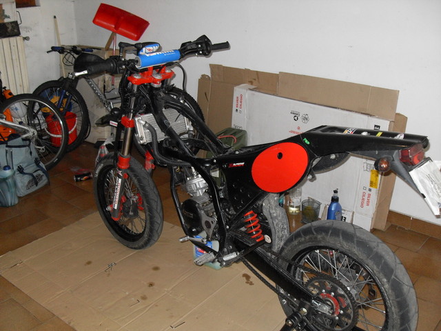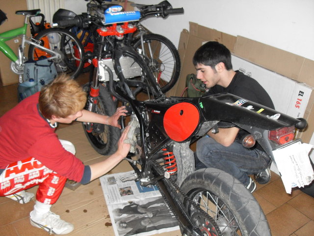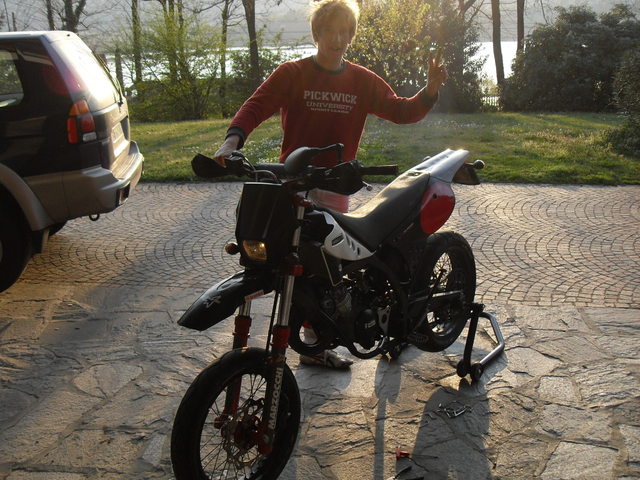 Siamo stati subito orgogliosissimi del nostro lavoro, e dopo i primi lavoretti di sistemazione ed alcuni minuti per fare assestare il motore, siamo andati a cominciare il rodaggino alla moto "rinata" nella via di fronte alla casa. Il motore ha dato subito manifesto di grande coppia e di ottimo assestamento generale: le marce erano molto brevi rispetto a prima ed il motore riprendeva giri senza alcun problema! Abbiamo anche pensato di cambiare il pignone della rapportatura finale, ma non abbiamo avuto tempo.... Ma la modifica è messa in piano e la porteremo a termine tra poco tempo!