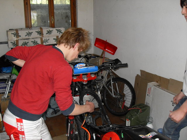 Abbiamo messo il Fantic Supersei di Adry sul cavalletto, abbiamo tolto la sella e con qualche difficoltà il serbatoio.... Ma nonostante ciò, fino a quel momento tutto andava tranquillamente e senza interruzioni.