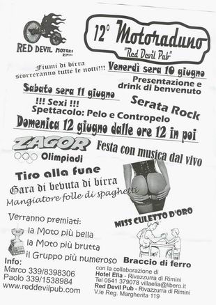 Locandina della 12^ edizione del raduno motociclistico che si svolgerà a Rivazzurra di Rimini il 10, 11 e 12 giugno 2005 Buon divertimento e mandateci una foto della vincitrice (possibilmente di spalle...)