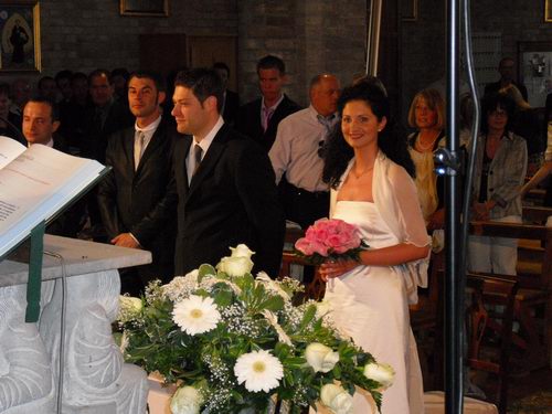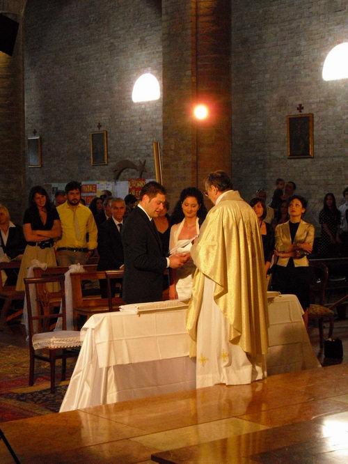 Ecco gli sposi in chiesa. Il biondo con la sua tipica espressione guardinga, sembrava quasi che stesse pensando qualcosa di eclatente ( tipo fuga improvvisa o qualcosa del genere...)
