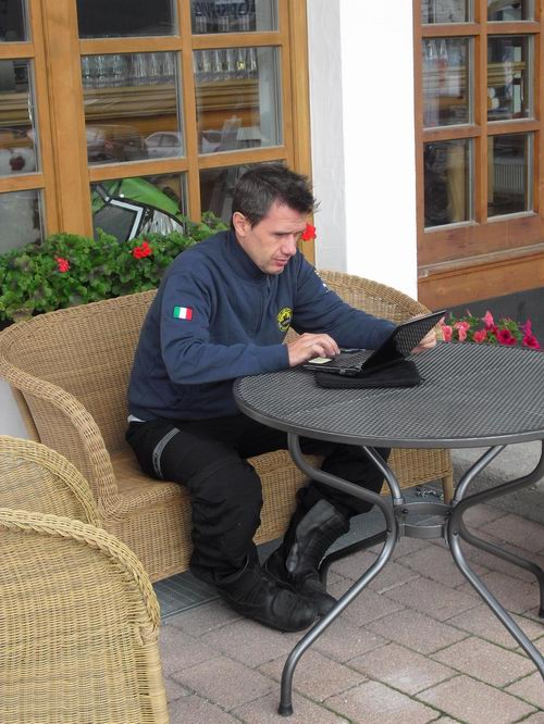 Sosta lungo il percorso per il pranzo. BC attrezzato con micro PC per seguire i suoi businnes ( ion si sa mai che ci sia il sacchetto dell'aspirapolvere intasato...)