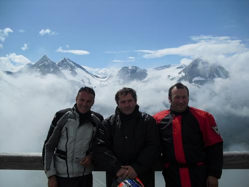 Partenza per il GROSSKLOCKNERPASS ( 2505 mt.) In realtà il passo si chiama HOCHTOR. Bella la terrazza EDELWEISSSPIETZE ( 2571 mt. ) raggiungibile solo in moto e con il fondo ciottolato dalla quale si vede un bellissimo panorama, peccato solo la nubi basse che ci permettono di ammirarlo solo a tratti. fantastica comunque la strada, specialmente il versante verso Heiligenbut.