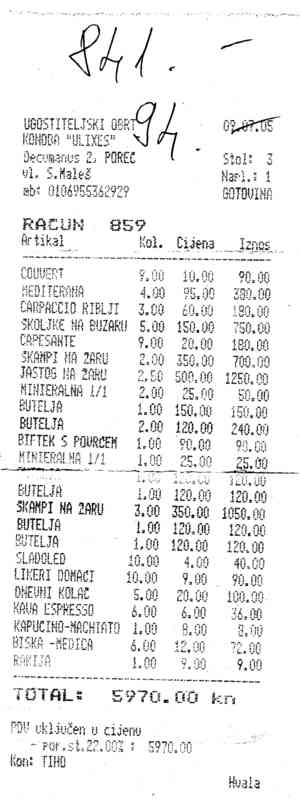Le strade in croazia peggiorno sensibilmente. Tra l'altro comincia anche a piovere e non si vede un ristorante. Quasi per caso ci infiliamo in un parco naturale ove troviamo un bel locale specializzato in selvaggina. Ottimo !