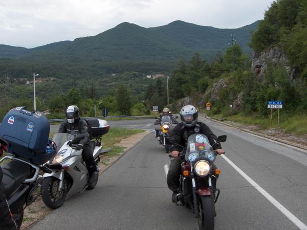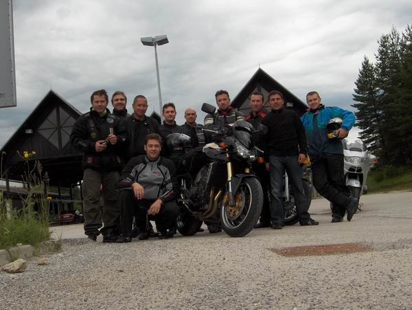 Al mattino fantastica strada sino al confine Croato.Foto di gruppo alla frontiera