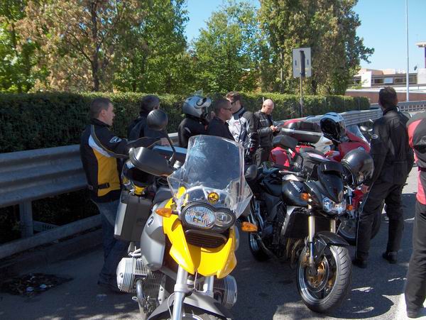 Casello di Venezia. Il gruppo aspetta un pistola che ha pensato bene di perdere un guanto mentre pagava. Il tutto Mi è ovviamente costato l'aperitivo !