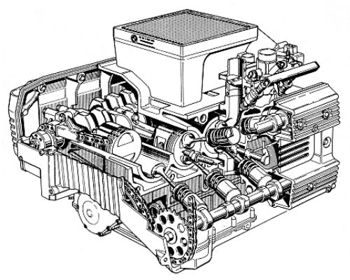 Una citazione del progettista Josef Fritzenwenger sul motore: La combinazione dei cilindri disposti longitudinalmente ha il vantaggio di un motore in linea con alcuni benefici di un motore boxer. Il centro di gravità è basso, può facilmente avere trasmissione finale ad albero (requisito allora indispensabile per la BMW), ha buona accessibilità meccanica e quindi è di facile manutenzione. Le prestazioni sono più facili da ottenere rispetto ad un motore bicilindrico. La produzione in serie è relativamente economica, è abbastanza solido da poter essere parte integrale della struttura della moto, diventandone quindi elemento di supporto nella configurazione telaio/motore del veicolo.