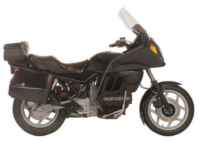 1986-1991 - K100 LT Tourer con più accessori ma uguale alla K100 RT, predisposizione per l’installazione della radio installa di serie, il topcase posteriore prima a richiesta ed ora di seria, sella versione Comfort, coperchi delle valigie e del top case verniciati in tinta con la carrozzeria.