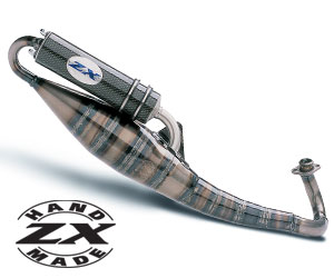 ZX – marmitta molto comune nei 50cc, omologata, costo che si aggira sui 120 euro online, prestazioni nella norma, taratura comune molla bianca (su minarelli) o molla originale (su piaggio), mollette bianche/verdi malossi e rulli sui 5.5 grammi. Marmitte che predilige i bassi, migliora di qualche km/h le prestazioni in allungo.
