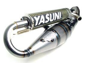 Pro replica – marmitta da 50cc e 70cc base poco spinti, omologata, prestazioni ottime su 50cc, molto usata, disponibile in 3 versioni: cromata con silenziatore in alluminio (130 euro), normale con saldature in vista e silenziatore in alluminio (120 euro) e cromata con silenziatore in carbonio (140 euro). Taratura comune: molla bianca (minarelli) o molla originale (piaggio), mollette gialle malossi e rulli sui 4.5 grammi. Ottime prestazioni, come la Yasuni R, in ripresa e allungo.
