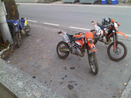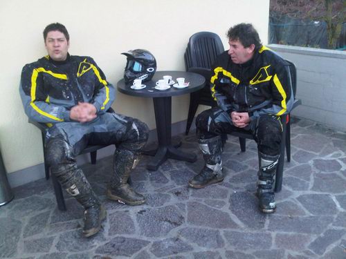 Partiamo direzione Tassobbio ( che da guadare è un piacere con tutta l'acqua che è venuta ) e dopo il mulino in direzione Leguigno la mia moto si ammutolisce mandandomi in riserva... causa confusione con il rubinetto della benza. Ci dirigiamo quindi da Danilo che in pantofole mi viene a dare la broda del suo K ( ....non ha nemmeno voluto i soldi, sto comunista ) Nel tragitto tra una scodata e l'altra il Gherro ingaggia una ripresa con un capriolo che ha la meglio in quanto il pres si pianta in un razzaro !