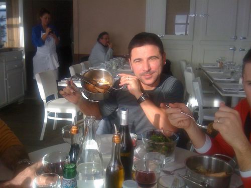 Festeggiamo il compleanno del Varano in una latteria di alpeggio riadattata a rifugio. Eccolo mentre da indicazioni telefoniche alla ditta con davanti del foie gras...