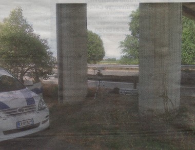 Ci sono pasato il 26/6/2011 e il 27/6/2010, e l'ho visto sempre nello stesso punto e con le due auto a coprirlo. Tra l'altro ce ne sono due puntati in entrambe le direzioni.