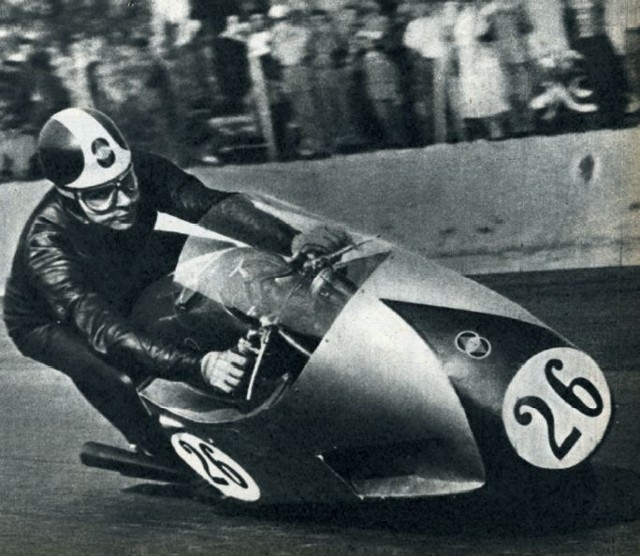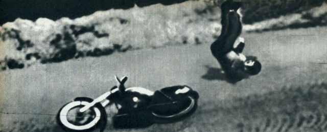 Il corridore Libero Liberati che su Gilera scio ha recentemente portato il primato del giro sulla pista di Monza a 184,8 km orari.
