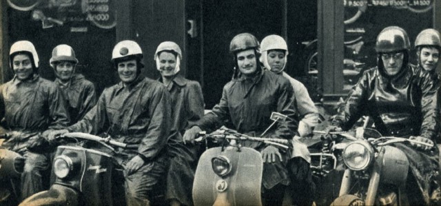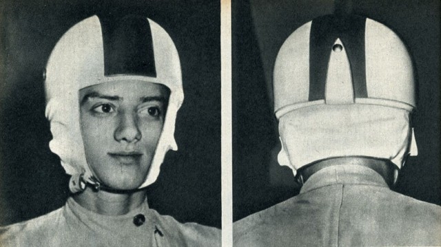 Il casco, all'epoca, non era certo un oggetto ignoto (nelle competizioni, in Italia, il casco era stato reso obbligatorio nel 1922!) e negli anni '50 era già in piena evoluzione tecnica, pur nella “limitatezza” dei materiali a disposizione.
