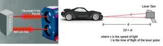 Altri invece calcolano la velocità dell'automobile derivandola dalla misura della distanza del veicolo. La misura della distanza del veicolo si ottiene dalla formula della cinematica del moto rettilineo uniforme d = c * t dove c è la velocità della luce e t il tempo impiegato dal laser ad andare e tornare indietro. (fonte Wikipedia)