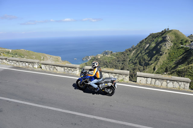 L’evento si è svolto su due giorni, in una location ed un contesto che meglio difficilmente poteva essere: la splendida Sicilia, nei dintorni di Catania e del maestoso Etna. Il primo assaggio delle moto (scelgo la Supertenerè) e delle Scorpion Trail ci porta a seguire le nostre due guide locali Alessandro e Sergio (tester Pirelli in forze al Centro Prove Pirelli basato a Giarre), su un percorso dal sapore turistico che si snoda attraverso i paesi che punteggiano la costa e l’immediato entroterra catanese. La strada prende quindi a salire verso Taormina e la giornata davvero spettacolare permette di godere di paesaggi e scorci sul mare letteralmente da cartolina.