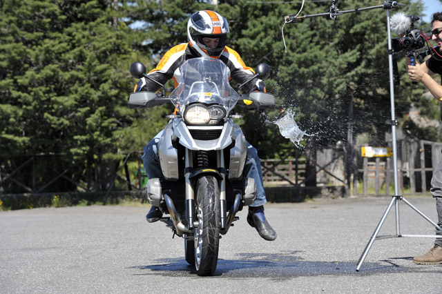 Il pasto termina e prima di tornare in moto, dobbiamo chiudere la questione della sfida, con l’ultima prova, la precisione. Come dei moderni cavalieri, obiettivo della sfida è far scoppiare un gavettone sospeso, indirizzandovi un dardo fissato sulla moto. Tentativo one-shot per ognuno, ci susseguiamo alla guida ed arriviamo al verdetto finale: questo punto va decisamente agli smanettoni! Per cui ci possiamo ritenere del tutto soddisfatti: nonostante i pronostici, i tester non sono riusciti a rifilarci il classico “cappotto”!!