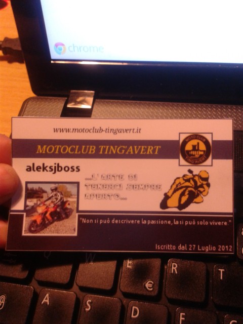 Puoi scaricare il modello in formato .odt per Open/Libre Office, oppure .doc per Microsoft Word, scrivere i tuoi dati, inserire un'immagine e stampare così una tessera simile alla seguente (si ringrazia aleksjboss per la realizzazione grafica). Per scaricare i file, devi aver effettuato la registrazione al sito ed il login.
