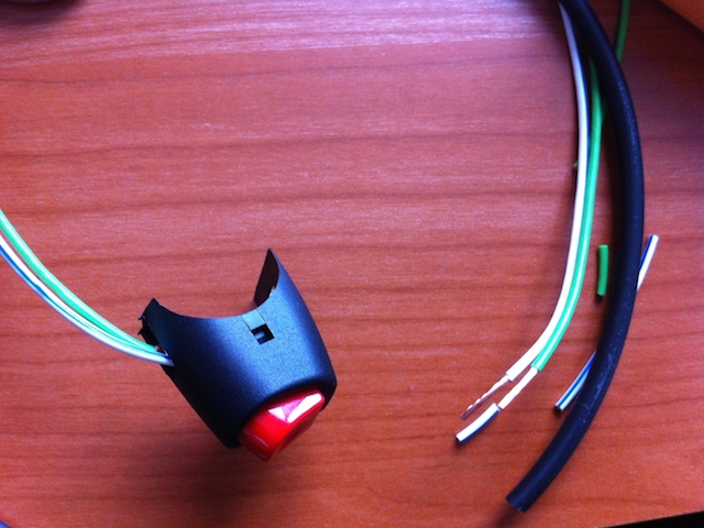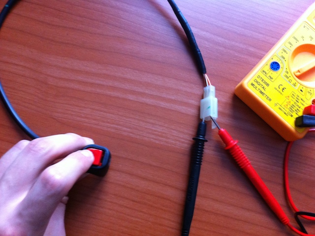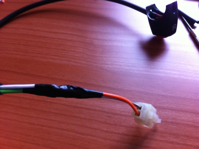 Nota: In caso lo preferite potete scegliere di cambiare il connettore dell’impianto elettrico della moto con lo stesso procedimento; oppure se trovate un cavo abbastanza lungo col connettore adeguato, ed avete la possibilità di saldare (con una saldatrice per componenti elettronici), potete sostituirlo a quello del pulsante di massa effettuando molte meno modifiche.