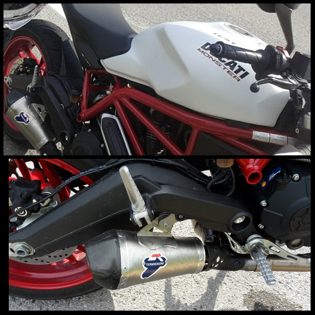 Come guida però ragazzi... non c'è paragone, la prima Monster è una moto molto più sportiva e la sua posizione caricata sui polsi e le pedanine arretrate danno un feeling superiore nella guida e la moto la senti piantata davanti come su una vera sportiva. Rimontato sulla mia ho sentito di più la scomodità, è vero, ma arrivato alla prima curva e averla impostata a dovere sembra di andare molto più giù e di avere maggior apporto e fiducia sull'avantreno. Questa è una caratteristica da vera moto sportiva!