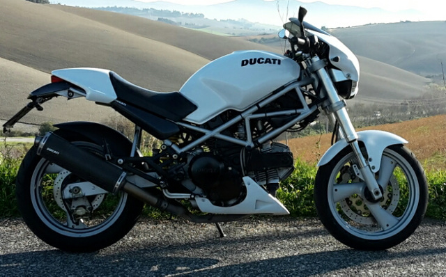 Ho montato un po' di appendici aerodinamiche (cupolino e puntale) più per estetica se devo essere sincero... ma a parte il colore bianco non originale e il parafango anteriore più sportivo, le modifiche maggiori sono stati gli scarichi (non omologati) Ducati Performance, il filtro in cotone BMC e il montaggio di un Kit DynoJet sage 1 comprensivo di Getti, molle e spilli. la tengo come una figlia, tutto sempre perfetto.