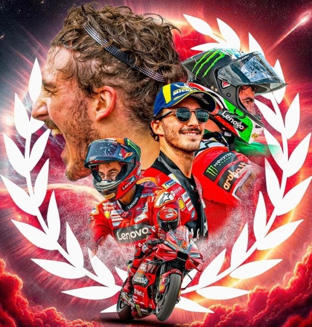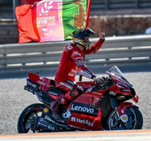 Francesco Bagnaia "Pecco" è il nuovo campione del mondo della MotoGP. Il pilota italiano ha conquistato Domenica 26 Novembre 2023 il titolo iridato con una gran bella vittoria nel Gran Premio di Valencia, l'ultima gara della stagione. Bagnaia ha dominato la corsa dal primo all'ultimo giro, resistendo agli attacchi dei suoi avversari e portando a casa il trofeo più ambito del motociclismo. È il secondo anno consecutivo (2022/2023) che "Pecco" e la Ducati Lenovo Team si aggiudicano il mondiale MotoGP. Per "Pecco" è il terzo moto mondiale vinto, il primo in Moto2 nel 2018 (VR46 Racing - Kalex Moto2). La Desmosedici GP si è dimostrata la moto più competitiva del MotoGP, grazie anche al lavoro svolto dal team e dai tecnici della casa di Borgo Panigale. Bagnaia ha dedicato la sua vittoria al suo maestro e amico Valentino Rossi. Il Dottore ha salutato il suo pupillo con un abbraccio commosso e gli ha consegnato la sua tuta da corsa, in segno di stima e affetto. Bagnaia ha ringraziato Rossi per averlo aiutato a crescere come pilota e come persona, e ha promesso di portare avanti il suo stile e la sua passione per le due ruote. Il Gran Premio di Valencia è stato quindi un evento ricco di emozioni e di immagini indimenticabili, che hanno fatto la storia della MotoGP e del motociclismo italiano.