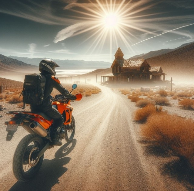 Il Deserto Infinito: Nel deserto del Nevada, Enrico combatte contro il sole implacabile. La sua KLR 650 solca la sabbia dorata, e il calore onnipresente gli fa ballare le allucinazioni davanti agli occhi. Ma è proprio qui che scopre l’essenza della solitudine e della resilienza.