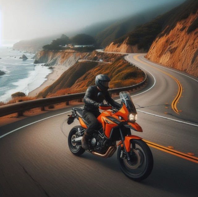 La Strada della Costa: Enrico segue la Highway 1 lungo la costa californiana. L’oceano Pacifico si estende all’infinito a sinistra, mentre le scogliere a picco si ergono a destra. Le curve strette richiedono abilità e concentrazione, ma lui si sente vivo come mai prima d’ora.