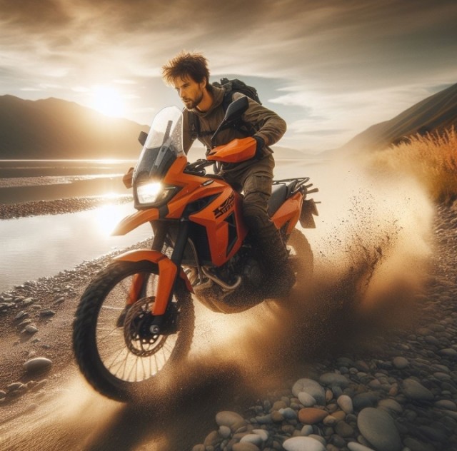 Le Strade Polverose: La KLR 650 affronta strade sterrate, sollevando nuvole di polvere dietro di sé. I sassi piccoli e grandi saltano contro il suo telaio, ma lei non si ferma. La sua sospensione robusta assorbe gli urti, e Enrico si aggrappa al manubrio, sorridendo.