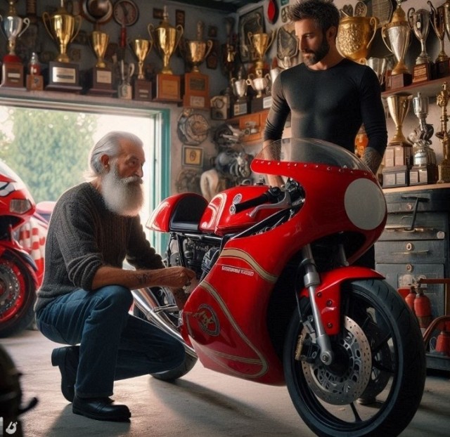 Un giorno, mentre Massimo spolverava il serbatoio della sua Ducati, suo figlio Marco si avvicinò. Marco aveva ereditato la passione del padre, ma era cresciuto in un’epoca diversa. Le moderne superbike e le tecnologie avanzate lo affascinavano, ma c’era qualcosa di magico nell’odore di benzina e olio che aleggiava nel garage di famiglia.