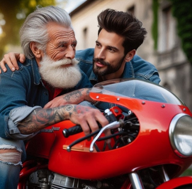 “Padre,” disse Marco, “ho sempre ammirato la tua Ducati. Ma non so se riuscirei a guidare una moto così… retrò.”
