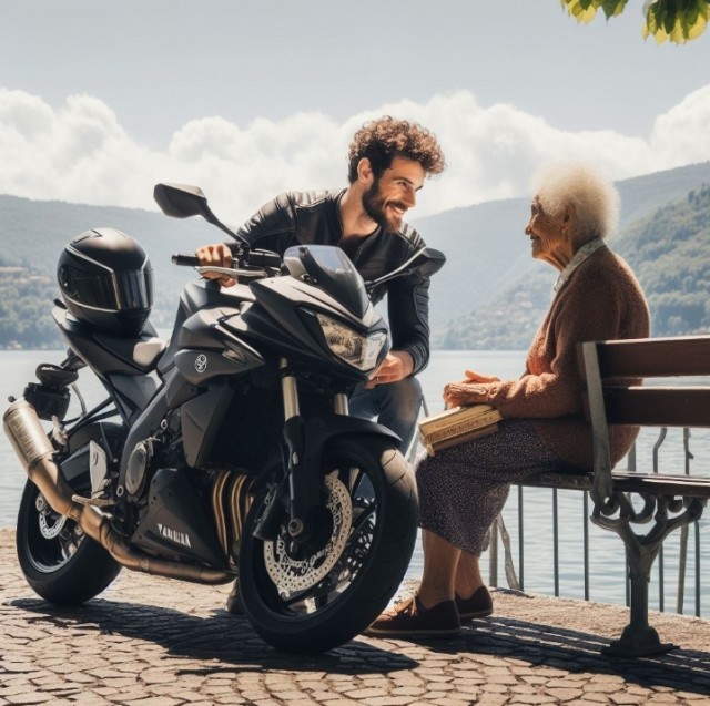 Ma non tutto era solo divertimento. Lungo il percorso, incontro una vecchia signora seduta su una panchina. Aveva gli occhi tristi e le mani rugose. Mi fermo per parlare con lei. Scopro che aveva perso il marito da poco. Per distrarla gli ho raccontato del mio giro delle Giostre e della magia che aveva trovato lungo la strada. La signora sorrise e disse: “Forse la vita è come un giro in moto. Ci sono curve, salite e discese. Ma alla fine, è l’avventura che conta.”