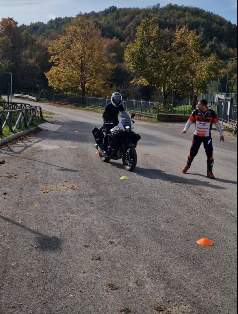 Stefano ritiene che il briefing sia il momento più importante della giornata; è infatti in queste ore che l’allievo viene messo a conoscenza di cosa ha bisogno una moto per essere guidata con fluidità e sicurezza e quali sono le tecniche da adottare a partire dalla postura per finire alle traiettorie passando per la forza centrifuga, l’effetto giroscopico, l’angolo di deriva, l’angolo di rollio e di come adattare lo stile di guida nelle diverse condizioni meteorologiche e stradali. Tutte nozioni che daranno all’allievo la consapevolezza che gli esercizi pratici che andrà ad effettuare saranno quelli idonei al loro fine.