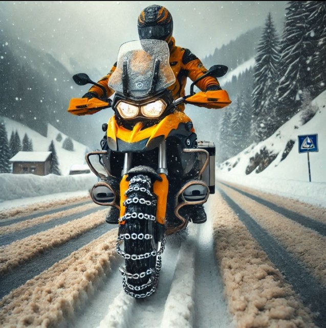 Le mani gelate, ma il cuore riscaldato, dalla voglia di realizzare questa impresa, costruirono finalmente le catene, pezzo dopo pezzo. E il BMW GS di Maurizio e la Yamaha FZ6 di Tullio erano pronte per sfidare la neve, un vero successo!