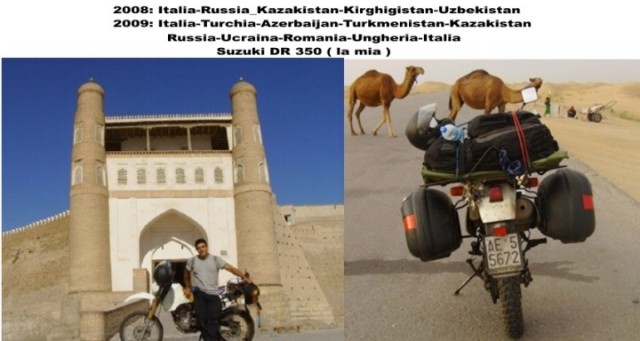 R- Innanzitutto non sono avventure: io vado in vacanza. Data di partenza e rientro fissate: al termine si torna a lavorare. Non le definirei nemmeno vacanze estreme: tecnicamente sono un biker scarso, la mia ruota posteriore è sempre consumata in mezzo. Questa è la prova evidente che non so piegare. Le mie prime due ruote sono state una Vespa PX 125 con cui a 19 anni raggiunsi Parigi, senza GPS ( era il 1982) e senza cartine stradali. Di solito non mi stanco a guidare per molte ore, non mi annoio. Piccolo “record” personale nel 1987: con la Vespa Modena –Amsterdam in 33 ore. Nel 2008 e 2009 con un Suzuki DR 350 usato ho gironzolato per l’Asia Centrale: Russia, Kazakistan, Uzbekistan, Kirghigistan, Turkmenistan. In seguito, i tempi ed i costi per spedire una piccola moto in altri continenti, mi hanno sempre fatto optare per il noleggio. Per esempio, in India, una Royal Enfield 350 cc costava meno di 9 € al giorno. I miei budget non mi consentono di noleggiare moto di cilindrate importanti e le mie capacità di guida lo sconsigliano del tutto. Inoltre in certi paesi, una gomma si ripara, un telaio si salda, ma la rottura della centralina elettronica può rovinare del tutto una vacanza, a meno di non essere con un tour organizzato… io però mi fermo tantissime volte durante la guida: un monumento, un mercato, una festa di paese, uno sciopero sono occasioni per scattare una foto o osservare il quotidiano vivere di un posto. Un tour operator mi picchierebbe dopo due giorni. Inoltre non ho amici con la passione della moto e quindi faccio per conto mio.