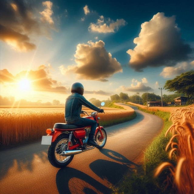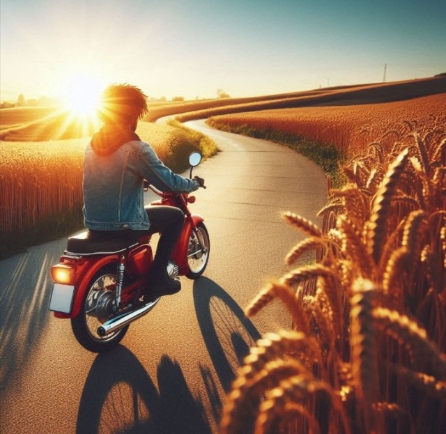 Ogni mattina, quando il sole sorgeva e la nebbia si diradava, il giovane si svegliava con un sorriso. Indossava il suo casco, si infilava i guanti e si sedeva sulla sella della sua fedele compagna. Il motore, si ruggiva, ma non troppo forte. Era un suono modesto, quasi timido, ma per lui era la melodia dell’avventura.