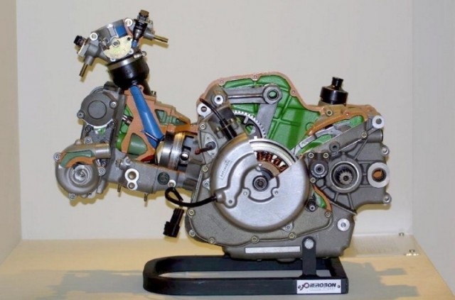 - Distribuzione desmodromica a quattro valvole, derivata dai motori Ducati SBK.