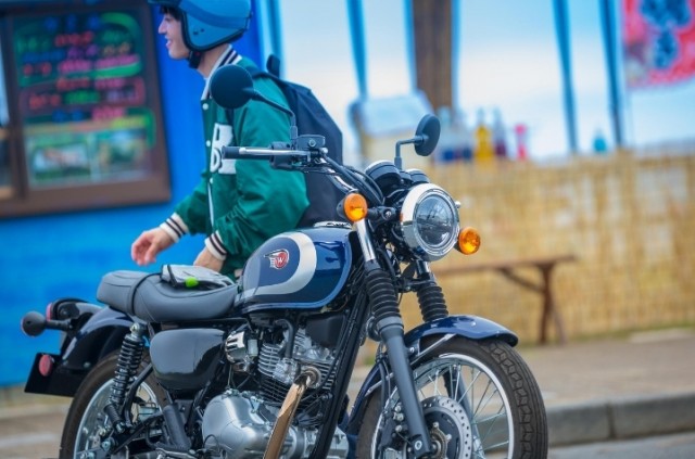La Kawasaki W230 è dotata di un telaio leggero e snello, con una sella bassa che facilita la guida anche ai motociclisti meno esperti.