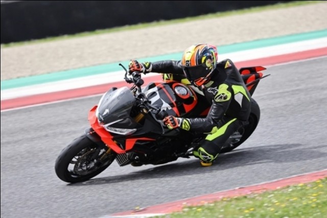 Mettersi in sella alla Tuono V4 Factory è un'esperienza entusiasmante. Il sound del V4 all'accensione è un richiamo alla pista, un ruggito profondo che si trasforma in un urlo acuto man mano che i giri salgono. La precisione dell'avantreno è disarmante, la moto scende in piega con una naturalezza che invita a osare, e la stabilità in curva è esemplare. La potenza è sempre presente, ma grazie all'elettronica, è gestibile anche dai motociclisti meno esperti, purché si mantenga il rispetto per le prestazioni che questa moto è in grado di offrire. Che si tratti di un giro veloce sui passi di montagna o di un'intensa sessione in pista, la Tuono V4 Factory risponde sempre presente, offrendo un divertimento e un'adrenalina pura.