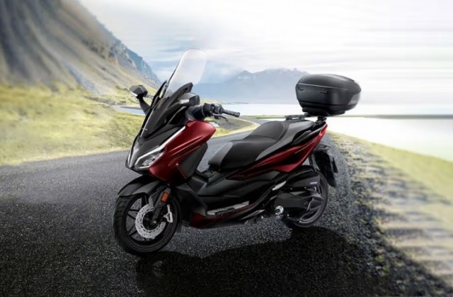 • Honda Forza 350: 330 cc. 29,2 CV, peso 184 kg, velocità massima 137 km/h.