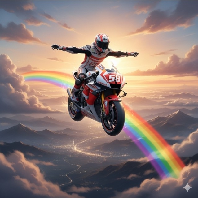 Il Tuo spirito indomito, la Tua chioma riccia che guizzava fuori dal casco, e quella determinazione feroce ci hanno regalato momenti di pura, indimenticabile adrenalina. Ci hai insegnato che si può essere campioni con il cuore in mano e il polso destro ben saldo sull'acceleratore.